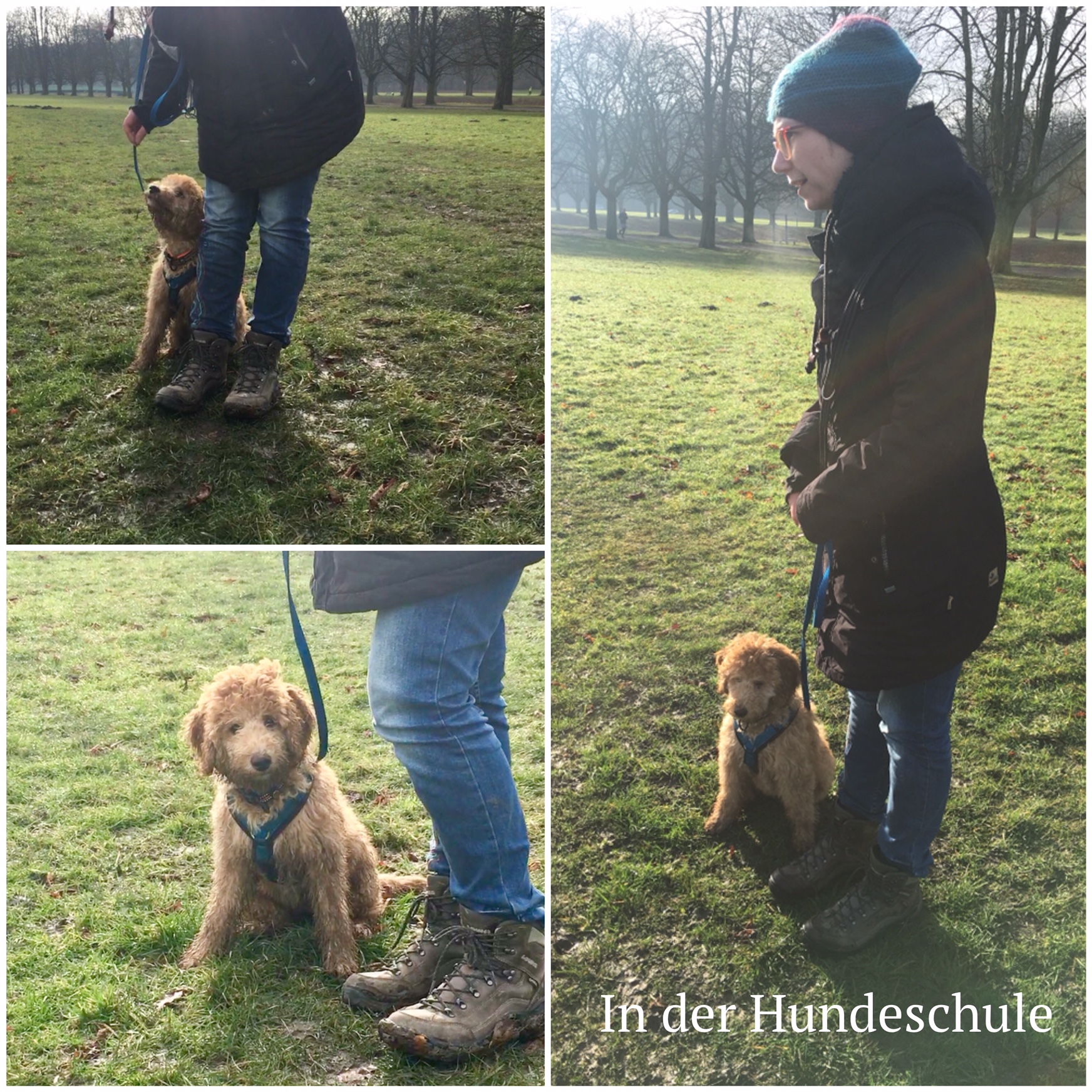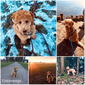 Samstags gehen sie mit mir in die Hundeschule, da treffe ich Hunde zum Spielen, aber wir müssen auch immer gut hören und sitzen oder liegen. Jedenfalls muss ich gut aufpassen, was Herrchen oder Frauchen von mir wollen und das soll ich dann auch machen. Da ich dann immer tolle Leckerchen bekomme, mache ich meistens mit, dann freuen sie sich auch und gucken mich ganz stolz an. Gestern sind wir sogar mit der Hundeklasse Bahn gefahren. Immer hin und her. Das habe ich nicht ganz verstanden, aber meine Menschen haben mich gelobt und glücklich ausgesehen.