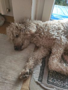 Wie immer ein Bild beim Schlafen. Wenn wir spazieren gehen, habe ich meistens keine Hand frei für ein Foto.