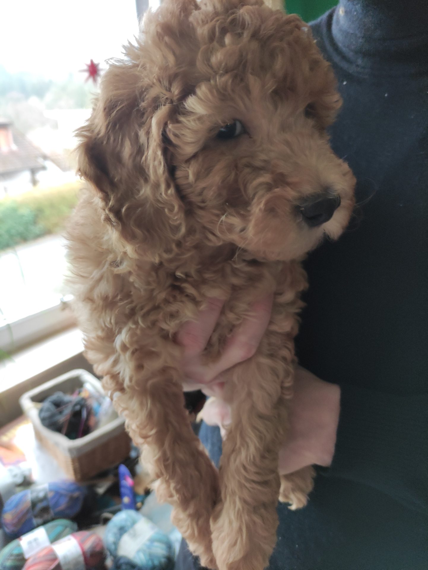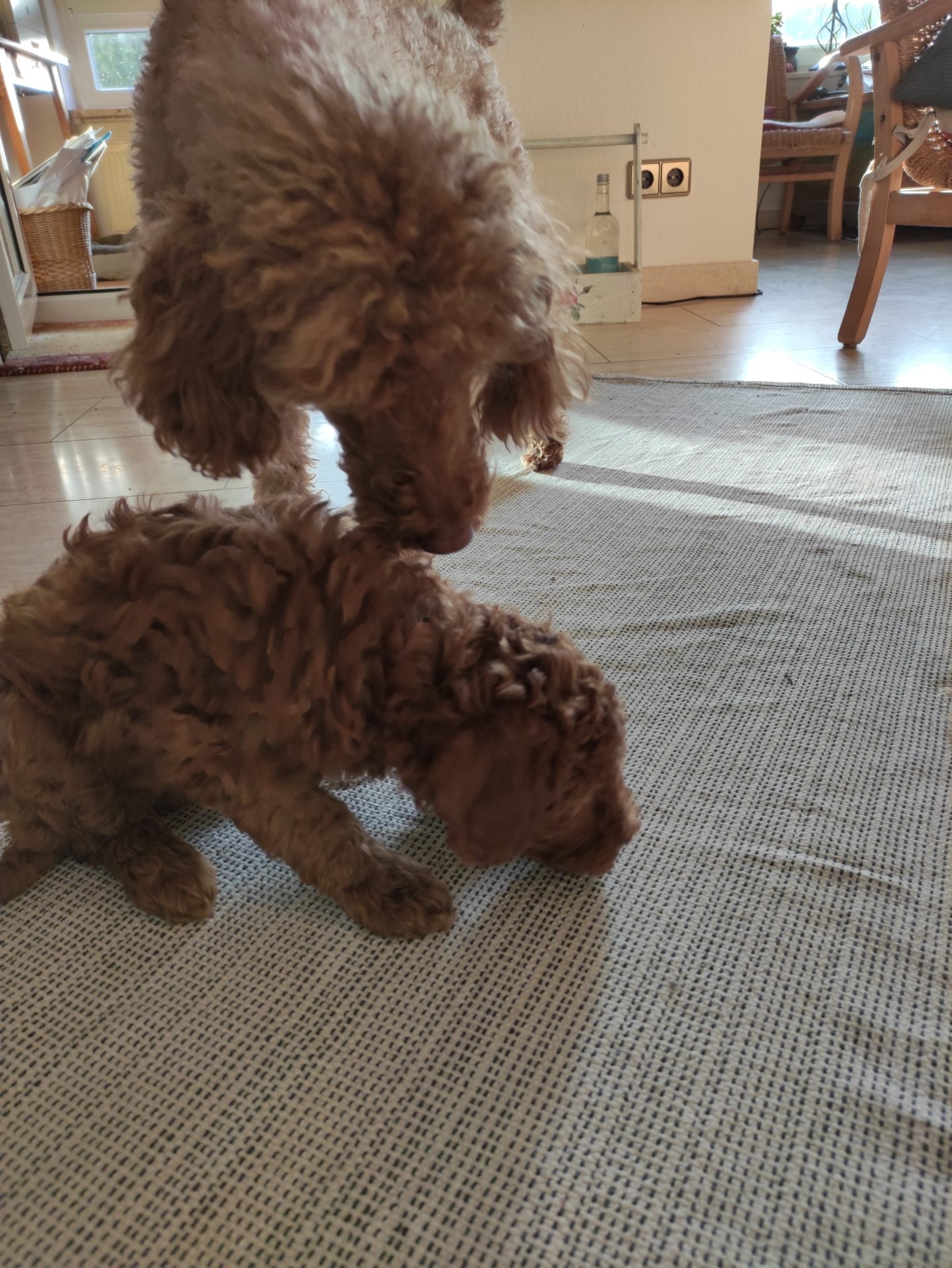 Die Welpen werden immer aktiver und toben manchmal schon eine halbe Stunde im Garten herum. Besuch wird jetzt auch freudig empfangen. Vor 2 Wochen gingen sie noch ganz vorsichtig auf unsere Besucher zu und suchten eher erst mal bei mir Sicherheit. Jetzt bin ich abgeschreiben wenn Besuch da ist. Alles Neue ist viel interessanter.
