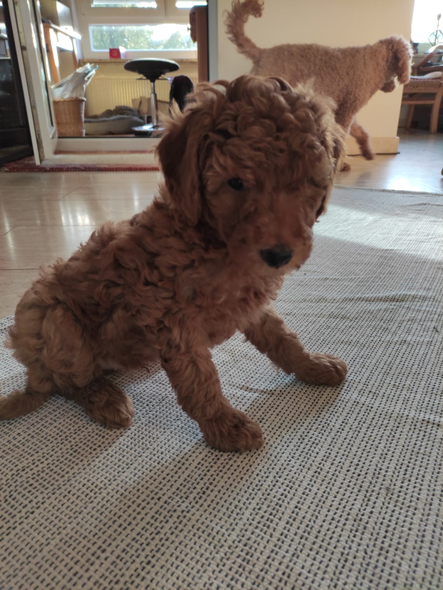 Wir haben die Welpen gestern und heute fotografiert. Gestern habe ich 4 auf den Teppich gesetzt, heute haben wir Portraits gemacht.