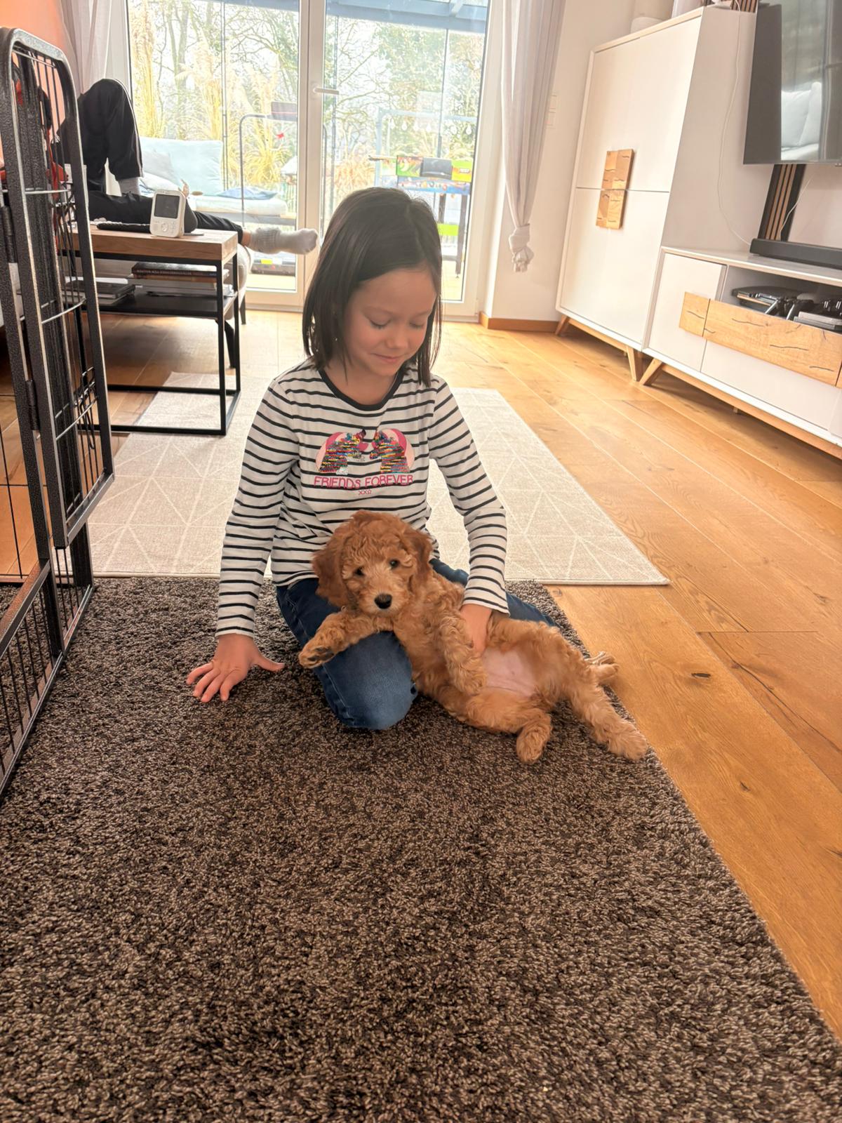 hier mal eine Welpen-Rückmeldung nach ca 1,5 Wochen: Alva (bzw. Pippa in den Papieren) ist ein absolut toller Hund!! Wir haben uns schon super aneinander und den Alltag gewöhnt. Sie kann schon „Sitz“, kommt (fast immer) wenn man sie ruft – es sei denn etwas anderes ist gerade einfach zu spannend 😅 und sie meldet sich zuverlässig, wenn sie mal raus muss.