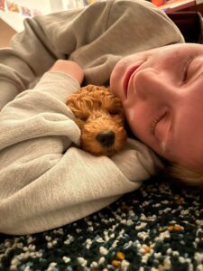 Wetterbedingt fiel die Hundeschule die letzten zwei Wochen aus. Aber wir haben das Gefühl, dass momentan die Bindung durch Spiel und Kuscheln eh noch wichtiger ist.