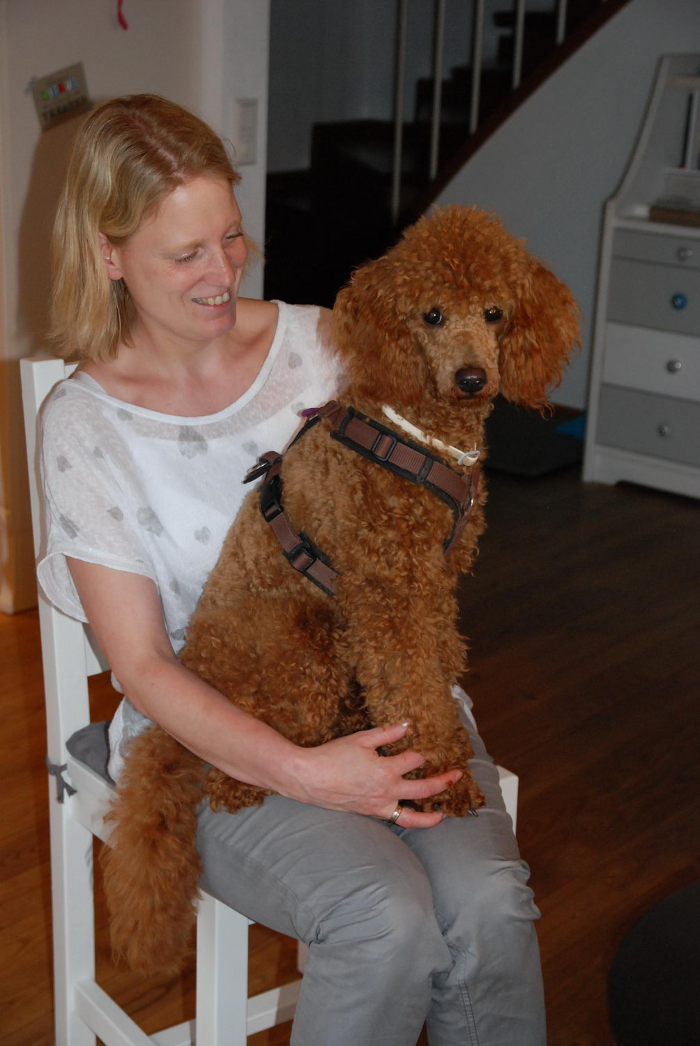 Baily ist ein toller Hund. Anfangs war sie eher ungestüm, aber jetzt hat sie ganz toll gelernt, ihr Temperament zu steuern. Wenn sie von uns gestreichelt werden wollte, hat sie sich vor uns gesetzt und mit den Füßen im Sitz immer etwas hin und her getippelt. Sie liebt es, Tricks zu lernen und kann schon ein paar schöne Sachen. Sowohl Baily als auch ihrer Besitzerin macht das großen Spaß und ich war sehr erstaunt, wie schnell und sicher sie sich schon hinlegen (tot stellen) kann, auch wenn die anderen Pudel um sie herum sitzen. Baily wiegt knapp 10 kg und ist etwas kleiner als Baja.