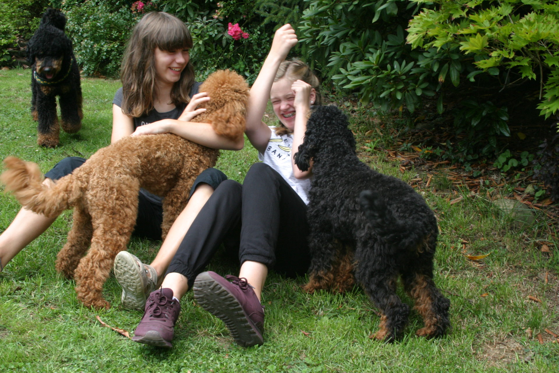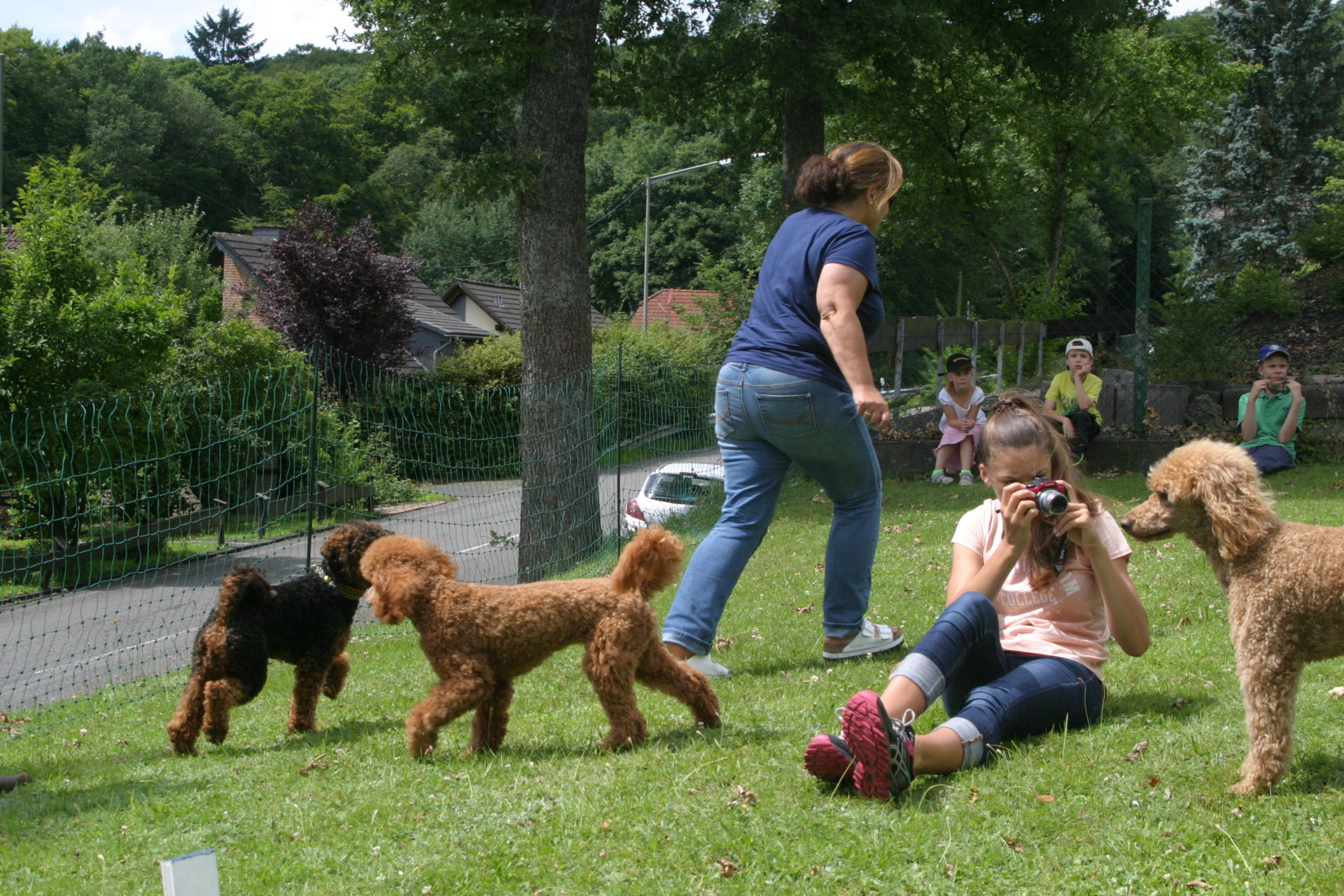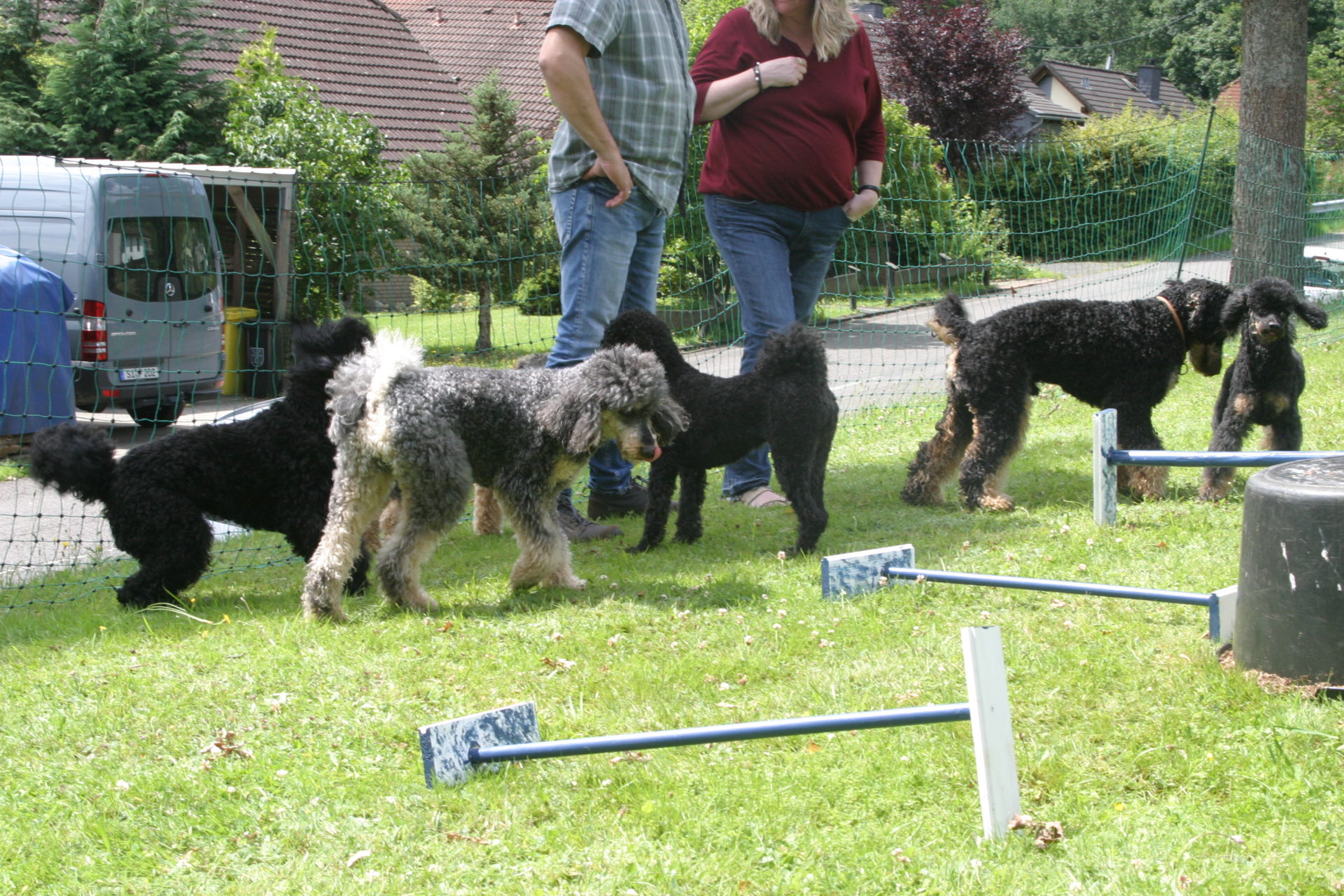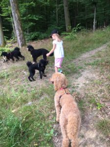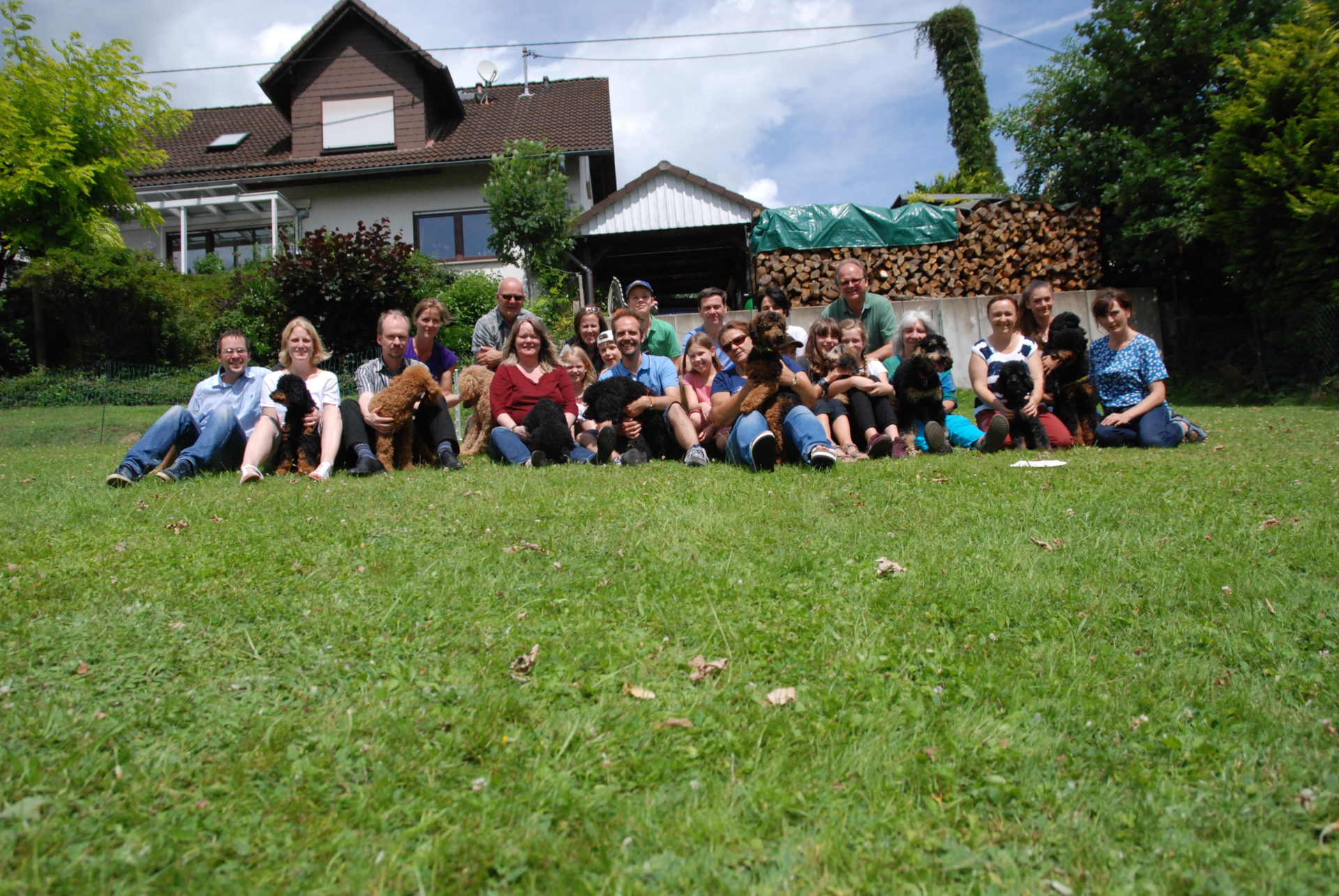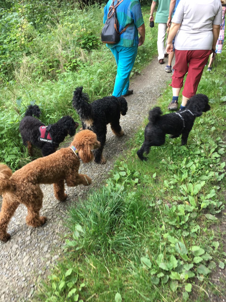Letzten Sonntag hatten wir unser erstes Pudeltreffen. Wir haben uns sehr gefreut, dass so viele Menschen und fast alle Hunde aus unserern beiden Würfen gekommen sind. Es war ein ganz toller Tag. Das Wetter war super und wir konnten viel draußen machen.