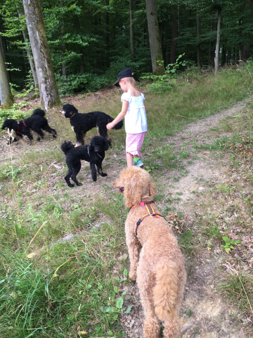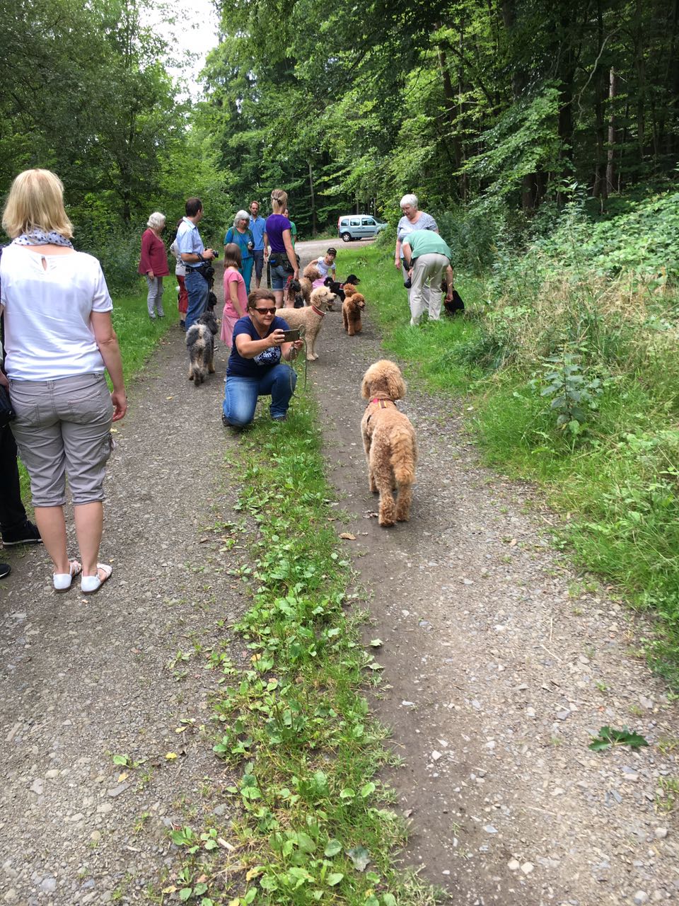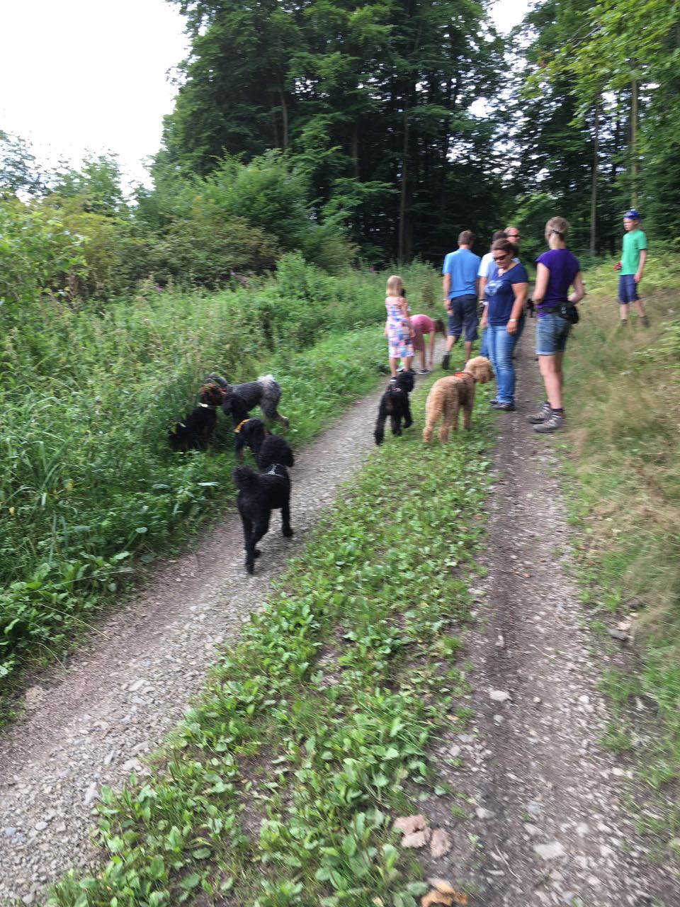 Wir haben als erstes einen Spaziergang gemacht. Das war schon spannend. So viele Menschen und so viele Hunde. Da die Kinder den Erwachsenen immer etwas voraus waren, ist auf den meisten Fotos nur ein Teil der Hunde zu sehen.