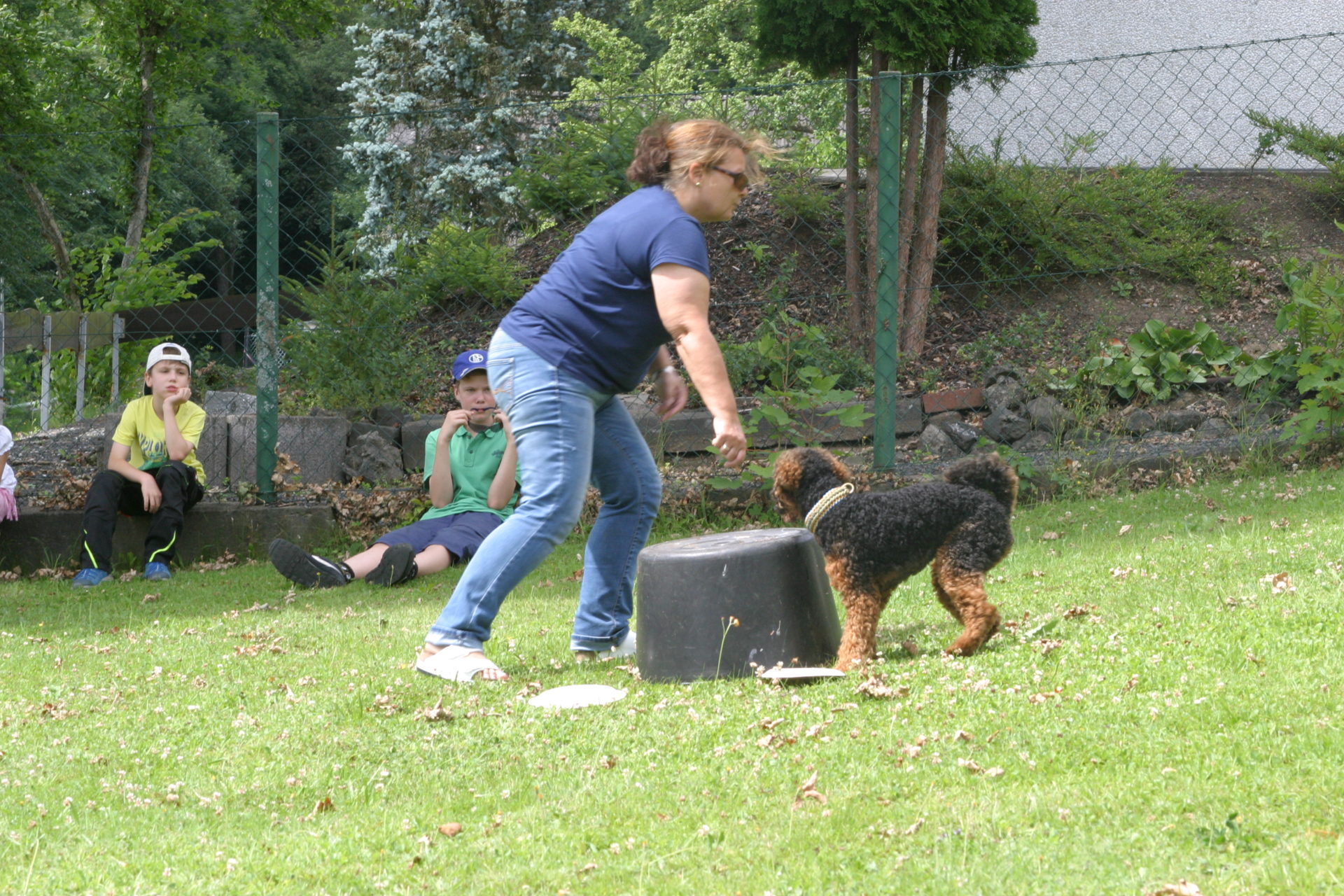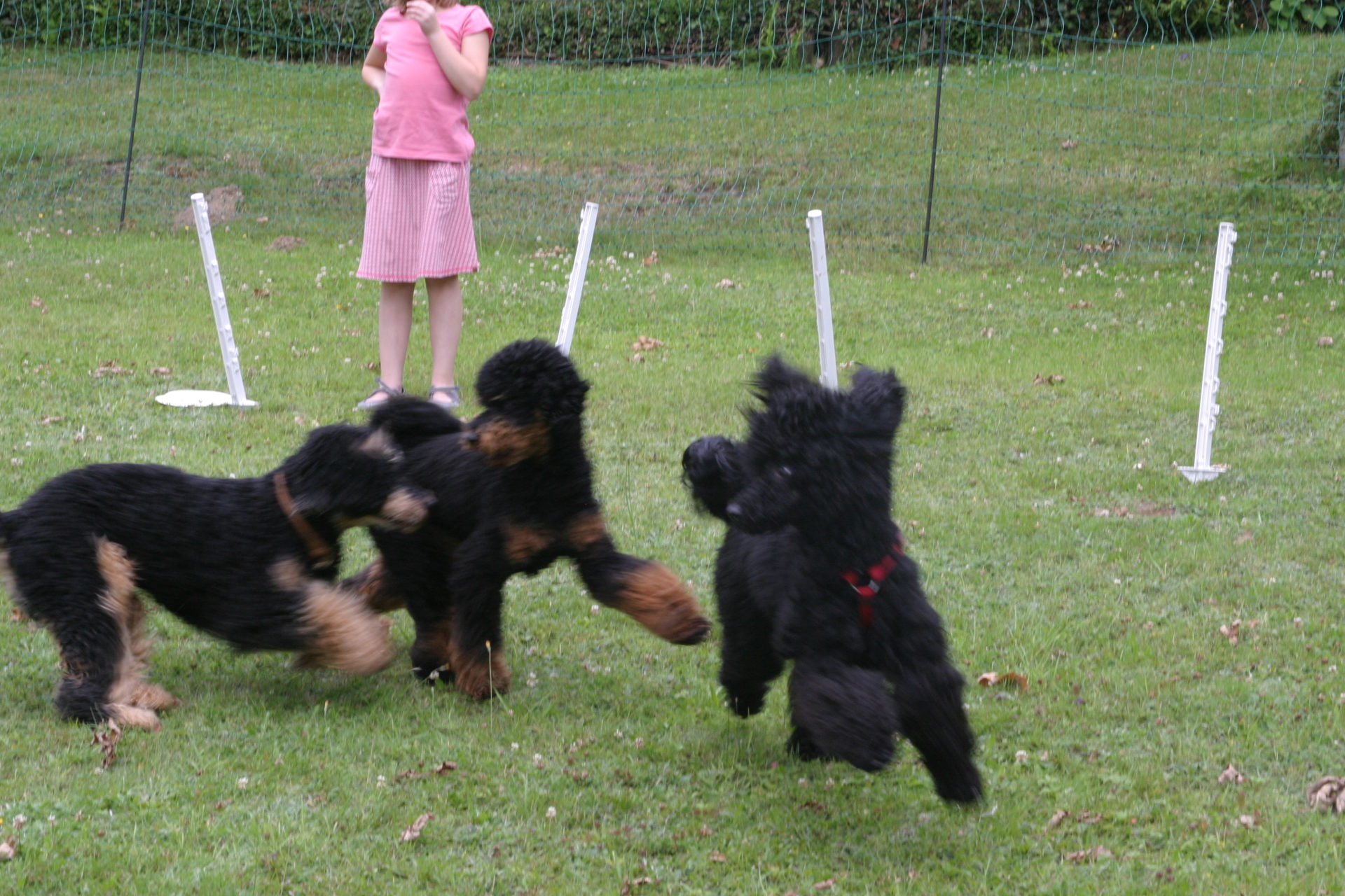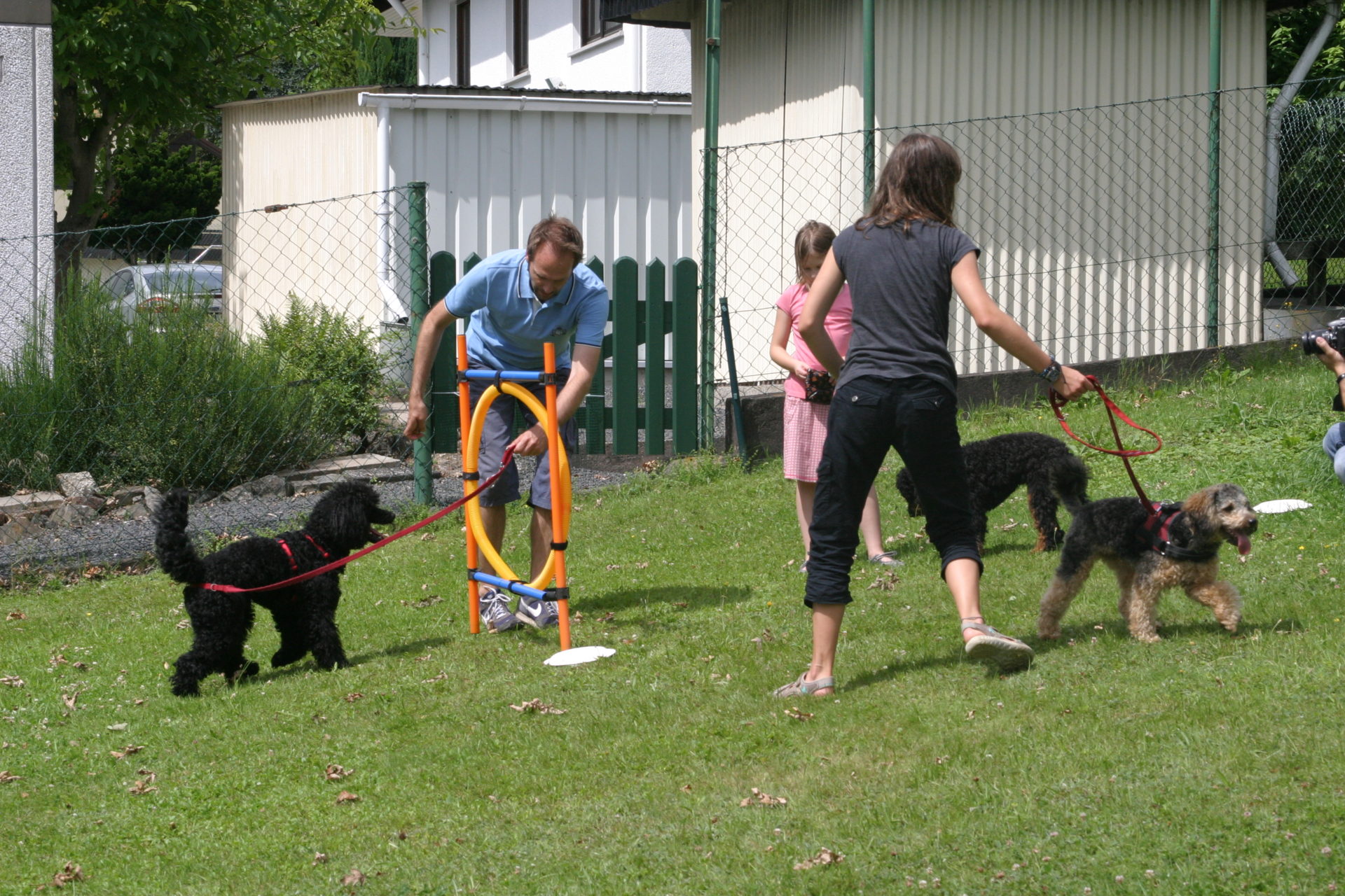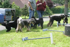 Anschließend ging es dann auf die Spielwiese. Da haben wir eine kleinen Agility-Parcours aufgebaut, wo jeder etwas mit seinem Hund ausprobieren konnte. Als alle fertig waren, konnten die Hunde toben.